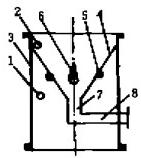 注:1,2.3—同圖2,4—網(wǎng)板,5——軸,6——導(dǎo)流翼,7——集球箱,8——膠球引出管