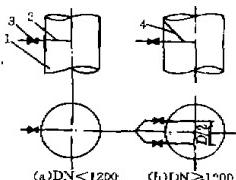 膠球管路應(yīng)短直、流暢.變徑頭圓滑以減小系統(tǒng)的阻力損失。投球管宜布置在距凝汽器循環(huán)水進(jìn)口有一定距離的直管段。投球管伸至循環(huán)水管中心,其出口逆向循環(huán)水流方向。循環(huán)水管公稱直徑DN<1.2m時,投球管為1根;DN≥1.2m時,投球管為2根,見圖5。