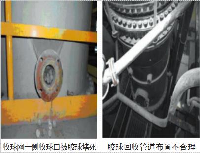采用大流量膠球泵,同時(shí)將系統(tǒng)DN108mm管道改為DN200mm管道,使原保持流量≥200m3/h,保證了膠球能夠暢通無(wú)阻地流動(dòng)。