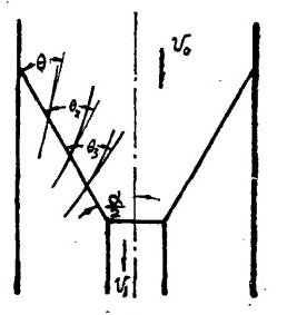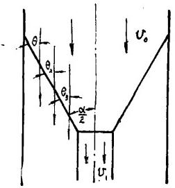 (1)進入下方箱的中心部分流體(以下簡稱中心部分流體)既不加速也不減速,其余部分流體亦不發(fā)生變化。對于無粘性流體,此時V?=V。。在這種情況下流線不發(fā)生任何變化:仍為平行直流線。各處流線與收球網(wǎng)板的夾角均相等,等于網(wǎng)板與中心線的夾角(圖2),即式中α為收球網(wǎng)板的設(shè)計夾角。