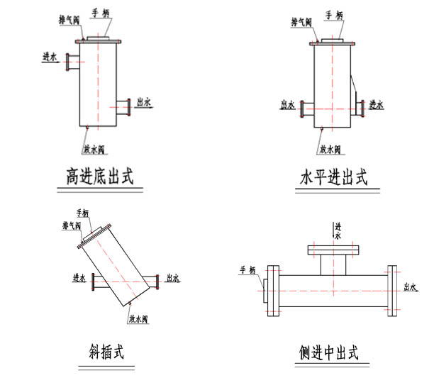我們將根據客戶的現(xiàn)場尺寸及運行工況,在滿足通流比的情況下,為客戶量身定做不同形式的濾水器,如水平進出式、斜插式、高進低出式、側進中出式等。