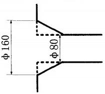 原出球口設(shè)計(jì)成倒噴嘴,在出球口處造成失壓,影響了膠球泵的抽吸能力,現(xiàn)將出球口口徑均縮小至DN80,如圖3所示,虛線部分為改造后情況,并將方形擴(kuò)口封堵。膠球泵的抽吸能力與出球口面積成反比,改造后,膠球泵的抽吸能力提高802/402=4倍。