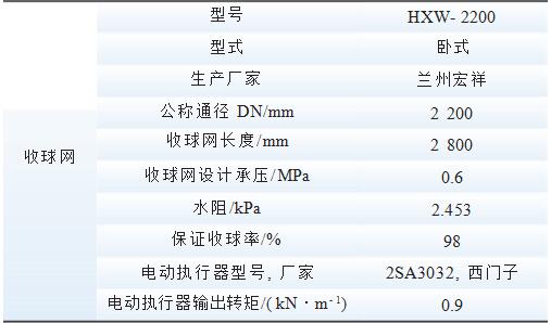 驗與改造,改造分為以下3個階段:將膠球系統投球管線由雙管改為單管,收球管線減少彎頭并去掉U型彎;把膠球清洗泵更換成大吸力窄葉片式泵;采用多種進口膠球,并把膠球由直徑24mm更換為22mm進行試驗。以上改造完成后,收球率仍低于30%,膠球清洗裝置系統收球率低的真正原因一直未能找到。循環水及膠球清洗裝置系統示意圖見圖1所示,系統主要設備參數見表1所示。