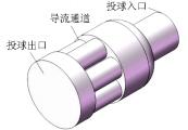 由圖8可以看出,導(dǎo)流通道對膠球通過膠球清洗裝置有一定作用,但由于在入口處通流面積突然擴(kuò)大,在管道內(nèi)流動(dòng)的湍流度增加,膠球?qū)⒃黾釉谄鋬?nèi)集聚的可能。從圖8還能看出,膠球清洗裝置中心的導(dǎo)流通道速度較高,但周圍6個(gè)導(dǎo)流通道速度較低,這可能會(huì)導(dǎo)致在膠球出口處形成橫向流動(dòng),阻礙膠球快速通過膠球清洗裝置。