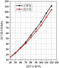 凝汽器水阻是凝汽器冷卻水在水側(cè)流動(dòng)的阻力,一般由凝汽器冷卻管水阻、凝汽器水室及管端水阻組成。對于數(shù)值計(jì)算模型,設(shè)置不同的進(jìn)口流速能得到不同的水阻,將其與凝汽器設(shè)計(jì)時(shí)測得的實(shí)驗(yàn)數(shù)據(jù)進(jìn)行比較,凝汽器水阻的大差值為9.2%,計(jì)算結(jié)果和設(shè)計(jì)結(jié)果差異較小,模型選用適當(dāng)。